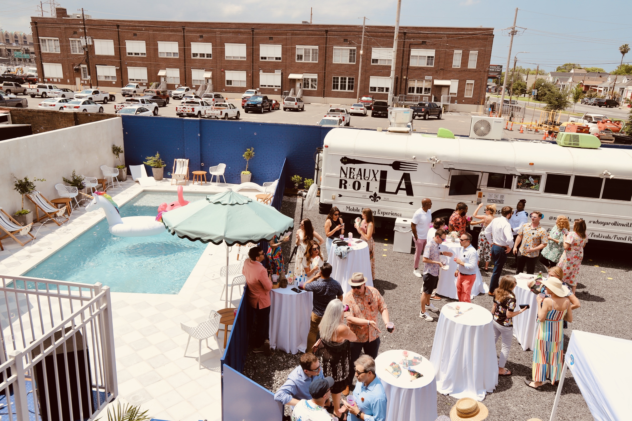 - Access to Pool deck, second Story Sun Deck, and all parking spots except for staff parking for three hours with 2.5 hour set up and 2 hour tear down.